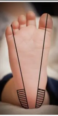 - Landmark site on lateral aspect of infant’s heel, on plantar surface (see shaded area of image). Avoid previous puncture sites.